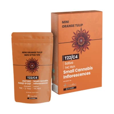 אורנג' טוליפ כתום מיני (Orange Tulip Mini) – תפרחת קנאביס מיניז (פרחים קטנים), מאפיון סאטיבה, מקטגוריית מינון T22/C4.