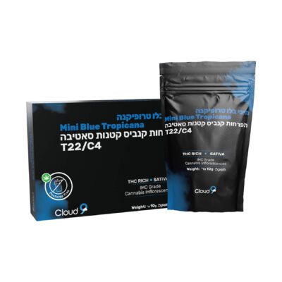 בלו טרופיקנה מיני (Blue Tropicana Mini) – תפרחת קנאביס מיניז (פרחים קטנים), מאפיון סאטיבה, מקטגוריית מינון T22/C4.